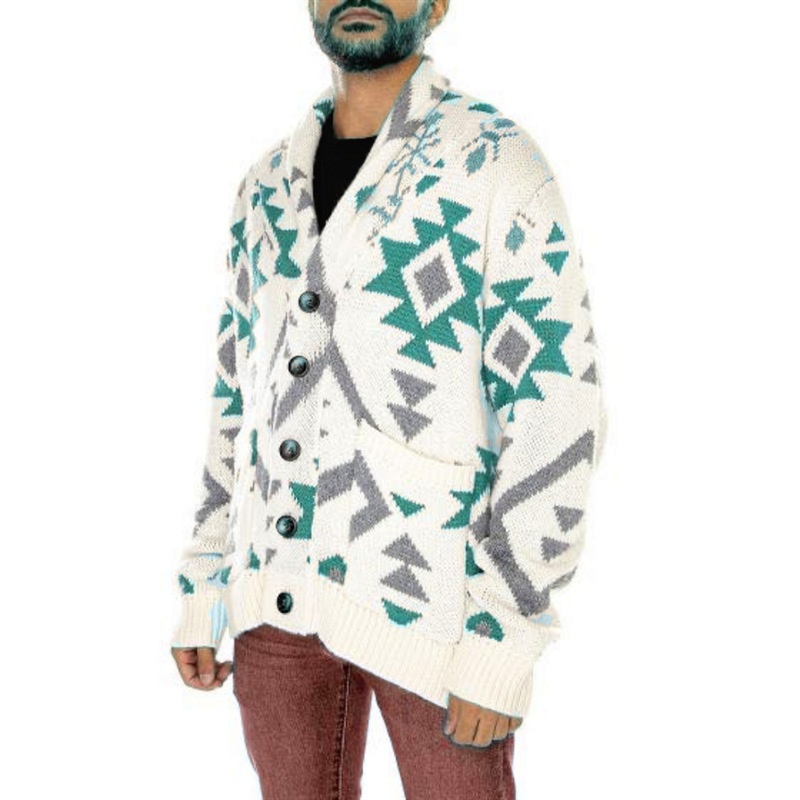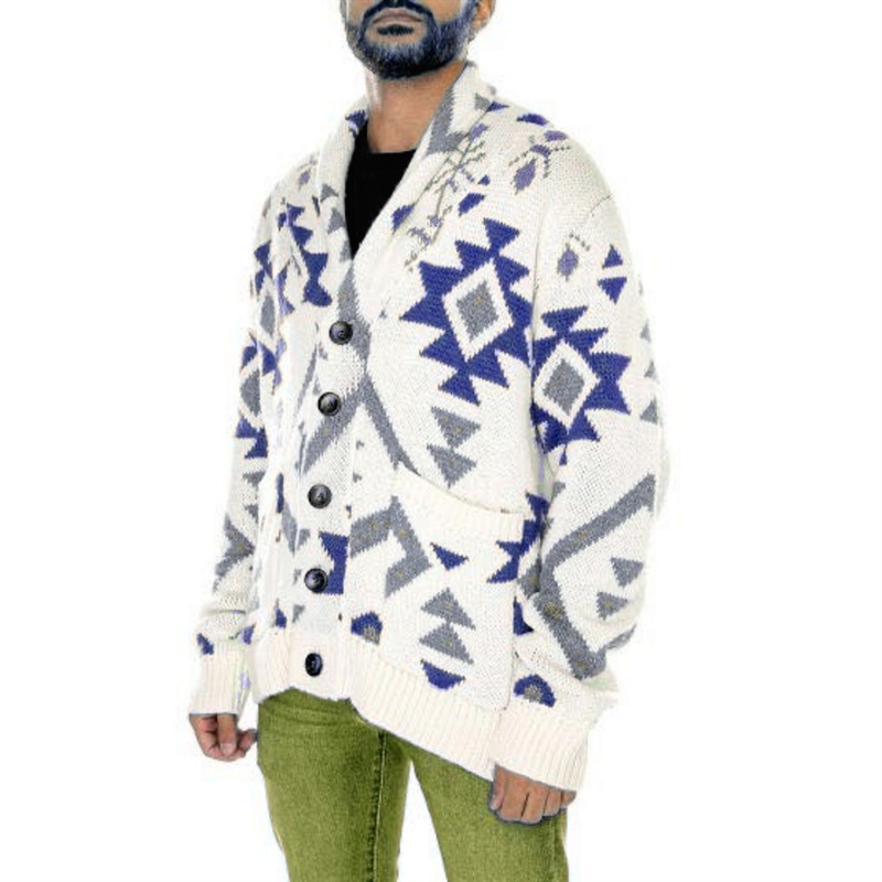 This men’s cardigan sweater, pictured, is both stylish and comfortable, offering unique advantages in many ways.