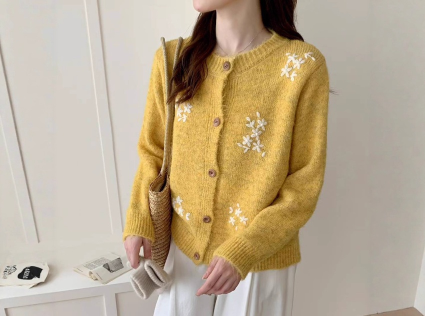 This sweater is also perfect for dates or gatherings with friends. Paired with a flowing maxi skirt and a pair of high heels, and accessorized with delicate accessories such as necklaces and bracelets, it can show a woman’s elegance and gentleness. The floral embroidery adds a romantic and sweet atmosphere to the overall look, making the wearer the focus at the party.
