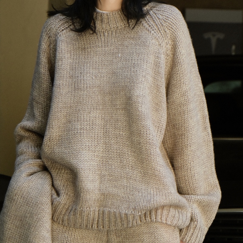 The overall base is a plain knit, with subtle blended textures (the natural variegated effect can be seen in the image). This texture retains the knit’s rustic feel while adding visual depth through subtle color variations, avoiding the monotony of solid colors. The design lacks noticeable ribbing, instead maintaining the simplicity of plain knit throughout, embracing the minimalist design philosophy.