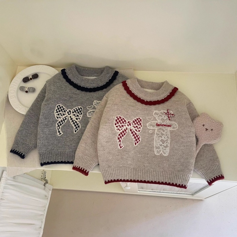 This children's embroidered crew neck sweater combines playfulness with sophistication, with ruffled and contrasting trim details adding a touch of femininity. The fabric is soft and skin-friendly, offering good warmth, making it suitable for autumn and winter. The ribbed texture and three-dimensional embroidery enhance both comfort and decorative appeal. The loose fit is comfortable for children's activities and suitable for various occasions. If you'd like, I can help you compile these features into a concise list of selling points for easy use in product introductions or recommendations. Would you like me to compile it?