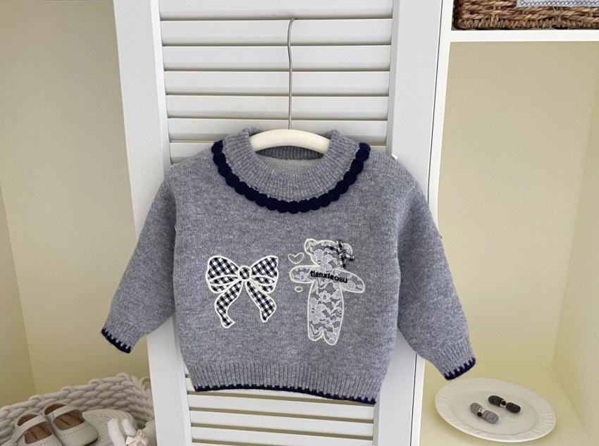 This children’s embroidered crew neck sweater is a practical and stylish piece perfect for autumn and winter. The overall design is gentle and refined, combining warmth with a playful touch.