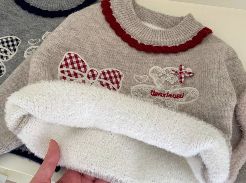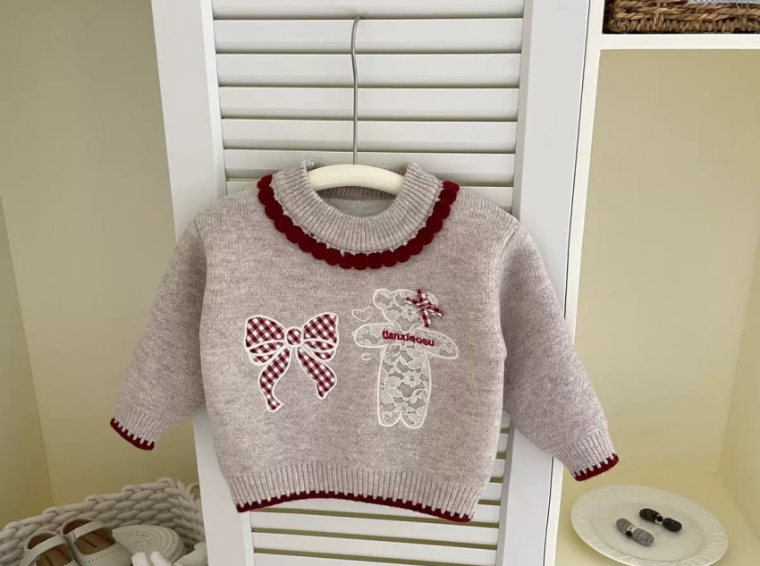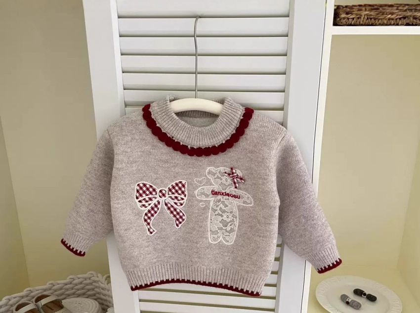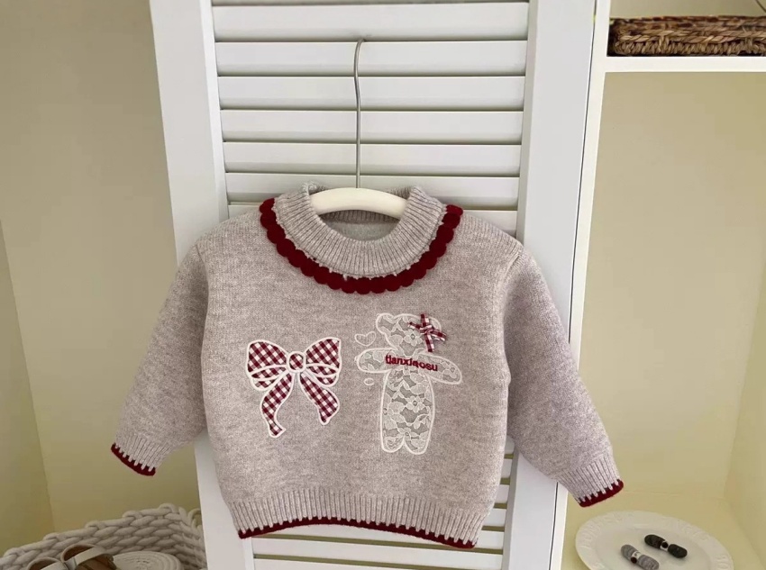 This children's embroidered crew neck sweater combines playfulness with sophistication, with ruffled and contrasting trim details adding a touch of femininity. The fabric is soft and skin-friendly, offering good warmth, making it suitable for autumn and winter. The ribbed texture and three-dimensional embroidery enhance both comfort and decorative appeal. The loose fit is comfortable for children's activities and suitable for various occasions. If you'd like, I can help you compile these features into a concise list of selling points for easy use in product introductions or recommendations. Would you like me to compile it?