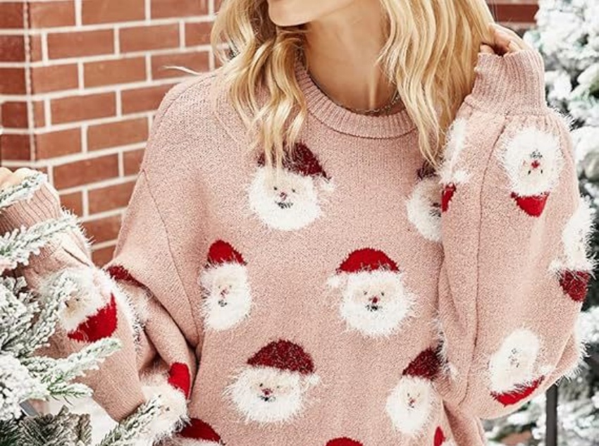 The picture shows an in-depth analysis of the Christmas women’s pullover sweater: