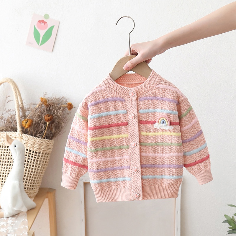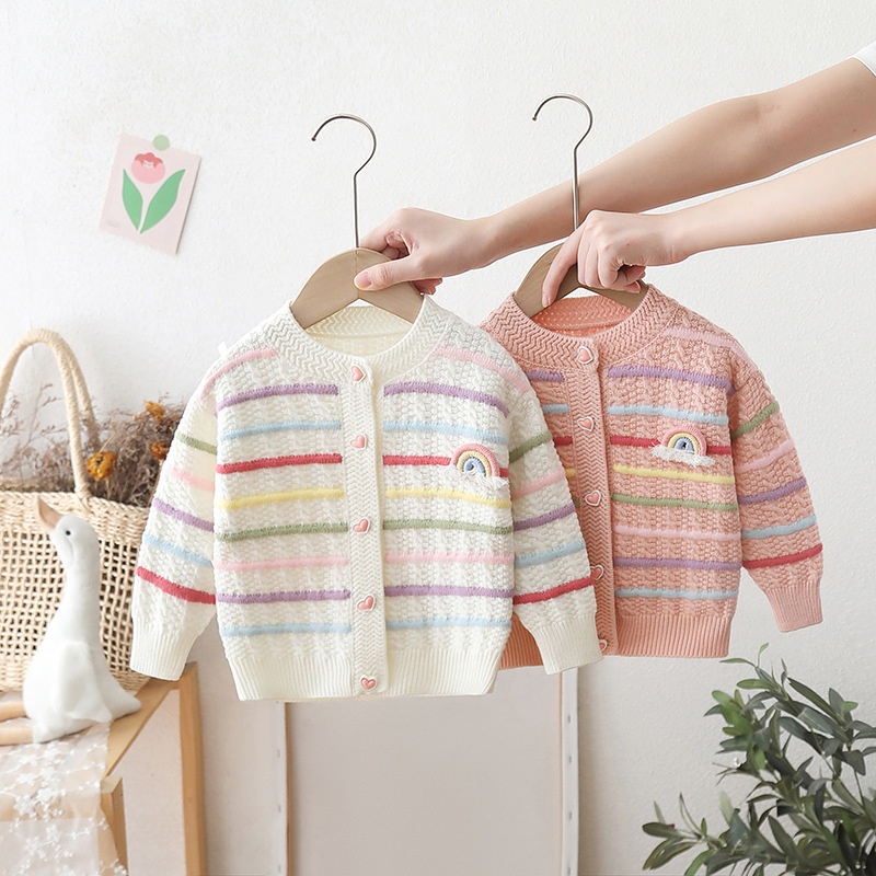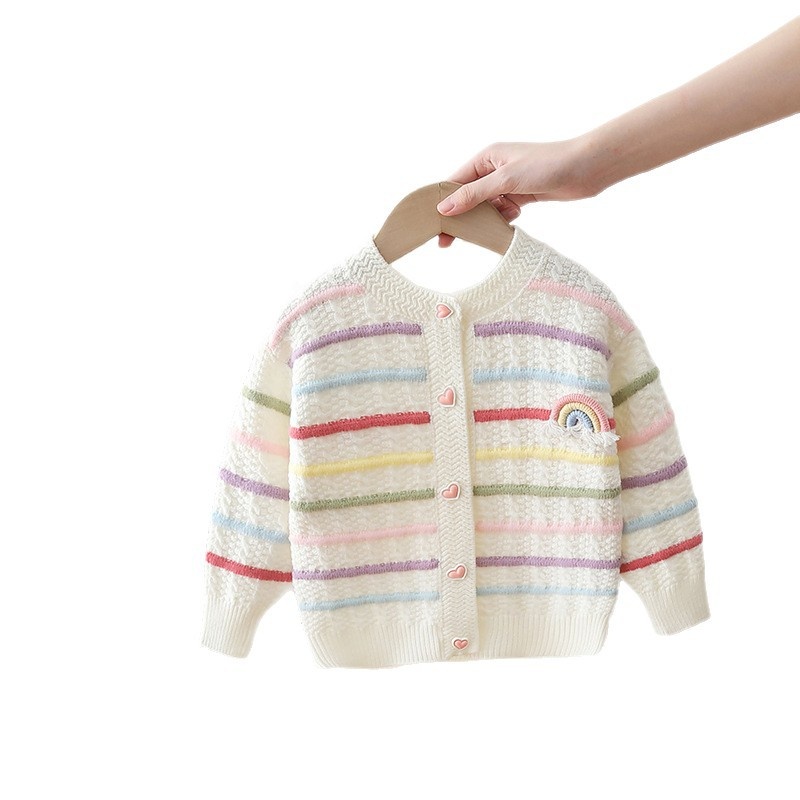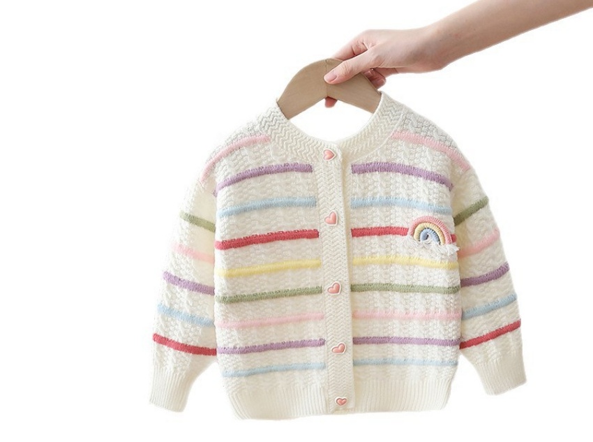 In-depth analysis of the rainbow striped children’s cardigan sweater: A perfect blend of childlike fun and craftsmanship, this piece in children’s clothing design always stands out when it combines visual appeal with comfortable wear. This rainbow striped cardigan sweater, with its vibrant colors, delicate craftsmanship, and playful design, is a striking choice in children’s clothing. The following is a detailed analysis from the perspectives of its features, σχέδιο, fabric, craftsmanship, ribbed texture, and suitable wearing scenarios.