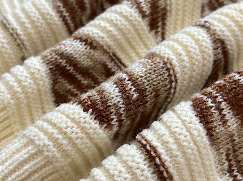 The sweater’s surface features a distinct ribbed texture, which adds a three-dimensional quality and texture. This ribbed design not only visually enriches the sweater’s appearance but also enhances its elasticity, allowing it to conform to your body’s curves. It also helps prevent the sweater from deforming during wear, extending its lifespan.