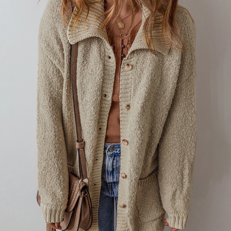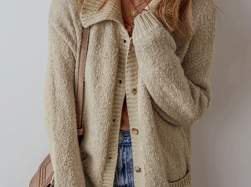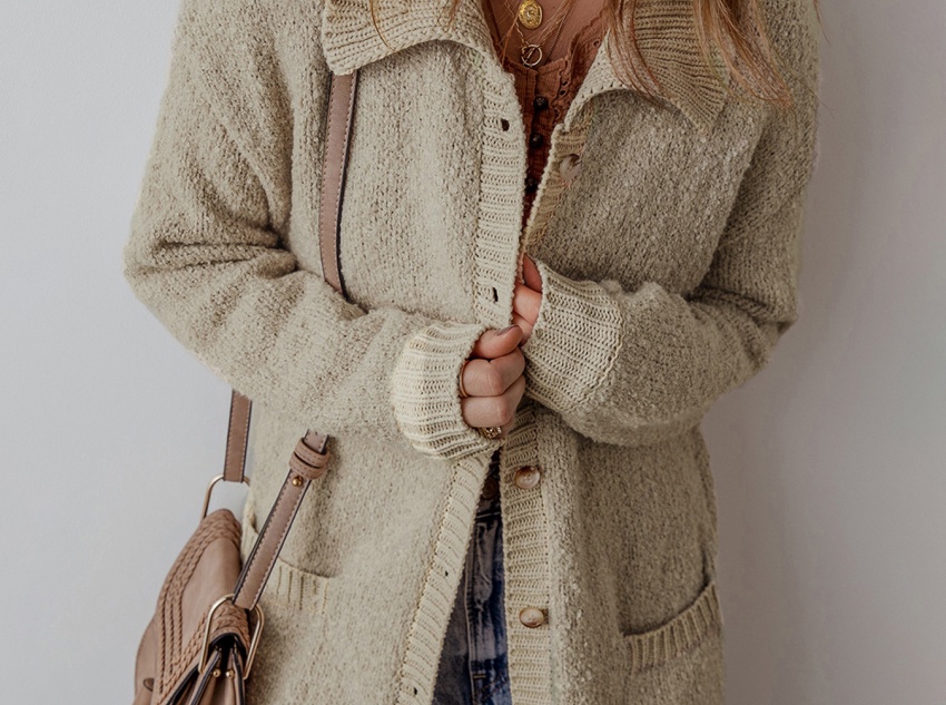 The open-front design makes it easy to put on and take off, making it suitable for both morning and evening temperature swings as a jacket or as an indoor “air-conditioning jacket,” making it highly adaptable across seasons (wear it alone in spring and autumn, or layer it in winter). The lapel design in the picture adds a touch of sophistication and vintage charm. Unlike a typical crew neck cardigan, the lapel visually enhances the neckline and adds a touch of style. Accessorize with a necklace or other accessories to enhance the look.