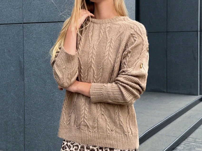 This cable-knit sweater with openwork shoulders is a retro-inspired knitwear piece perfect for autumn and winter, embodying the current trend of relaxed style in its design, craftsmanship, and wearing experience. Вот подробная разбивка: