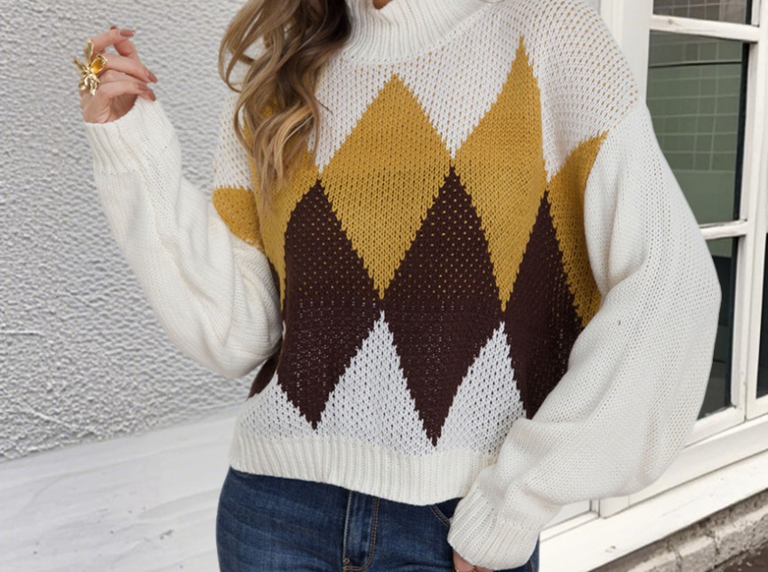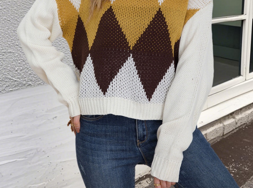 This women’s argyle color-blocked sweater is a retro and comfortable autumn/winter fashion statement: