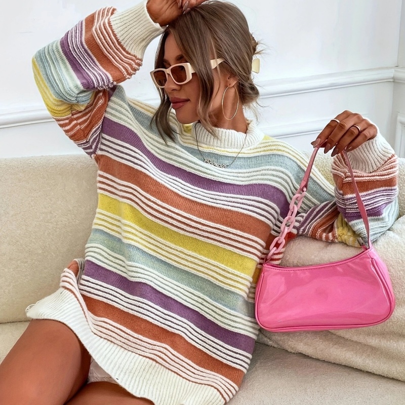 This rainbow striped pullover sweater is a visually appealing and practical piece in the current fashion world. Here’s a detailed analysis from multiple perspectives: