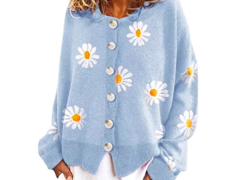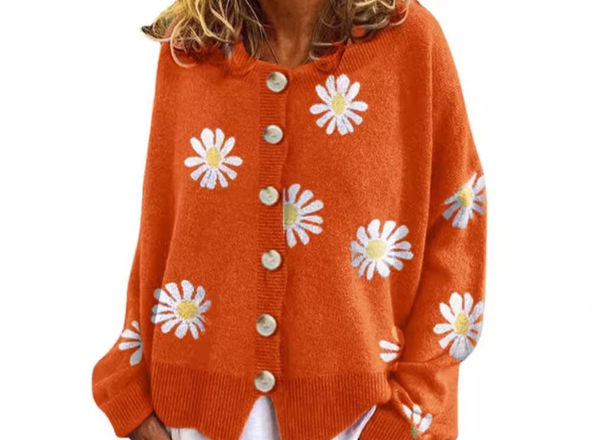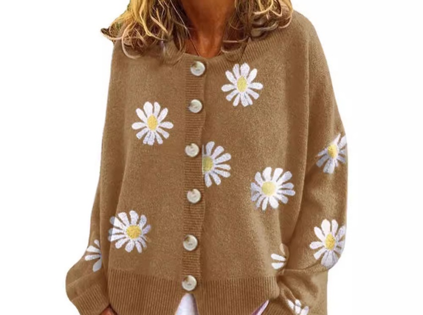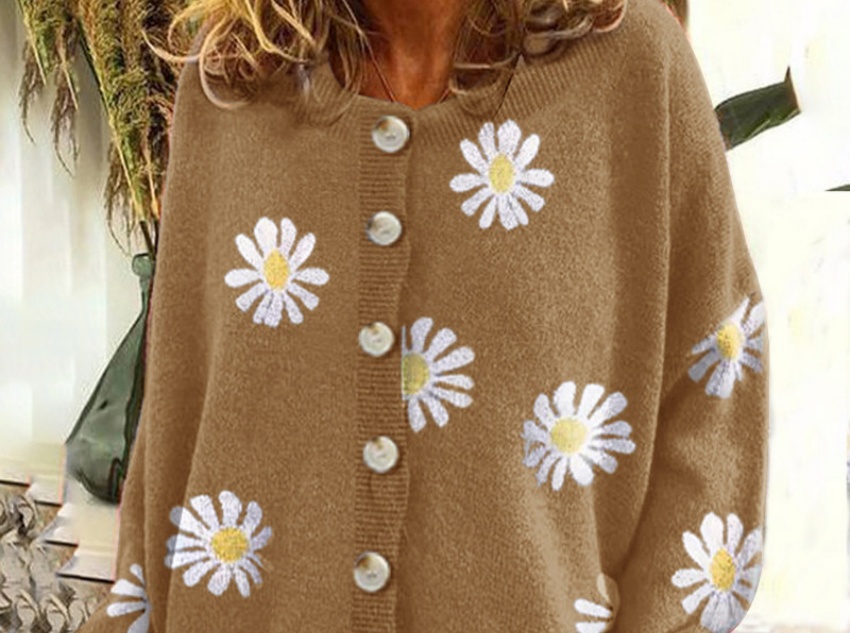 This women’s chrysanthemum embroidered cardigan is a representative piece in the autumn wardrobe, combining a “gentle and feminine feel” with “practicality.” From its design to its details, it precisely hits the aesthetic and needs of autumn and winter dressing. Below is a detailed analysis from multiple perspectives: It features a short, slightly loose fit, with a length between 50-65cm (standard length), naturally concealing any tummy bulge without making the wearer appear shorter, making it flattering for women between 155-170cm in height. The hem has a slightly curved cut, which is more dynamic than a regular straight hem, allowing for layering and preventing a bulky look.