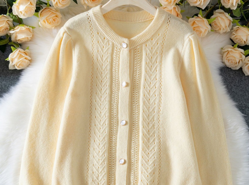 Collar and Placket: The round neck design is simple and elegant, softening the neckline and adaptable to a variety of inner wear styles. The single-breasted placket with delicate buttons ensures easy on and off while providing a visually striking detail. The number of buttons can be adjusted to suit your outfit, creating a layered look.