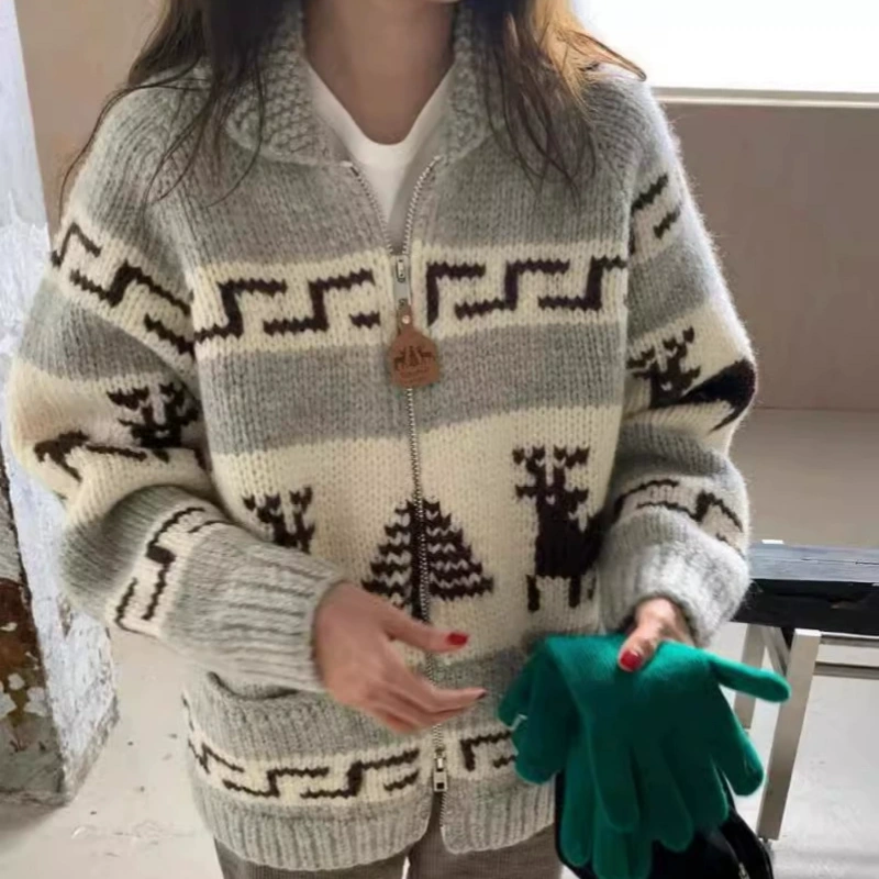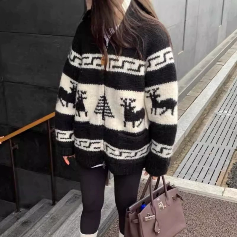 This cardigan sweater has a unique style and a sense of design. It can be worn everyday or as a Christmas sweater .