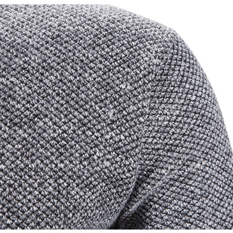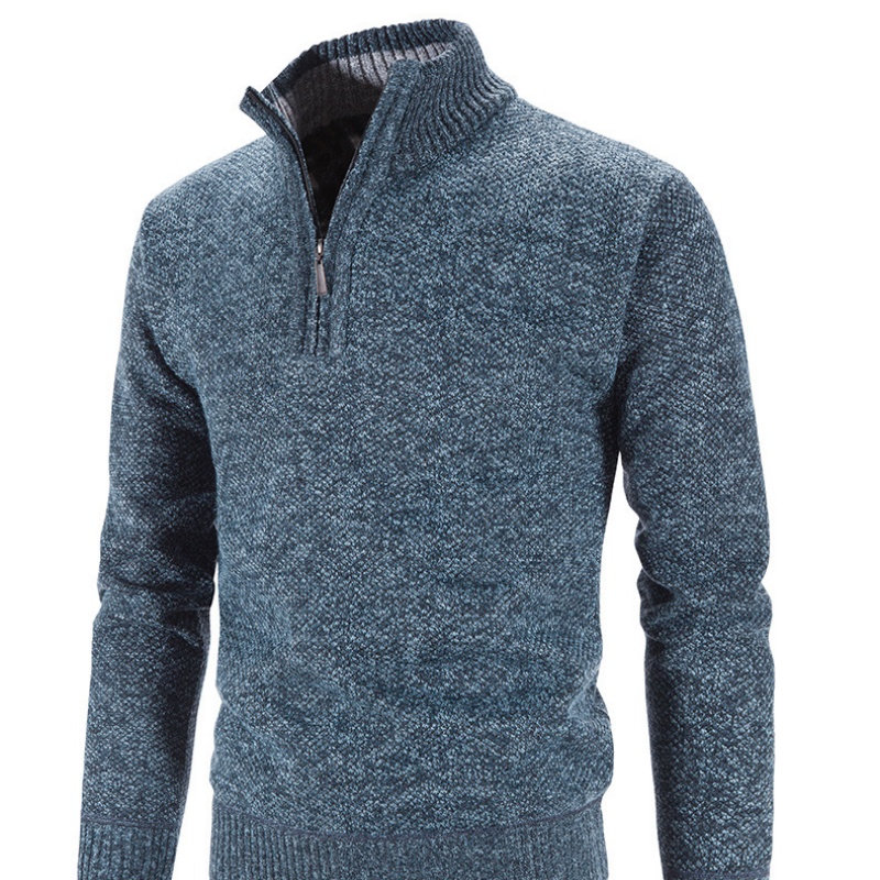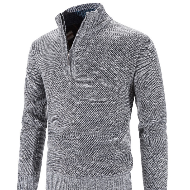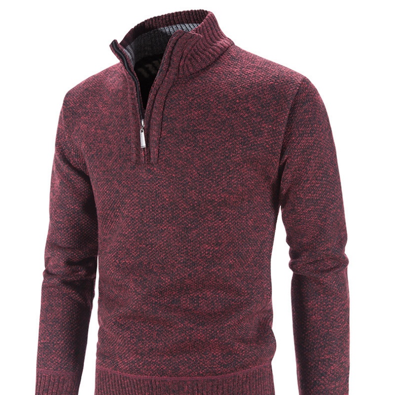 This is a semi-high-neck zipper men’s sweater.. The overall knitting texture of the sweater is clear and the texture is relatively thick. The semi-high-neck design combined with the zipper feature not only adds a touch of fashion but also makes it convenient to put on and take off, as well as adjust the opening degree of the collar. It has good warmth retention and is suitable for wearing alone in spring and autumn, or as an inner layer in winter. It is a daily wear item that combines practicality and aesthetics.