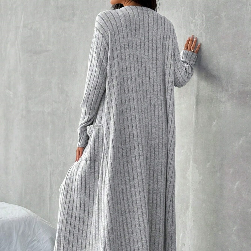 The long cardigan design and loose off-the-shoulder cut create a laid-back and casual atmosphere. The garment reaches near the ankles and is highly adaptable to various body types. It can be easily worn by both petite and tall figures. The setting of large pockets not only enhances practicality but also adds a sense of casualness to the overall design.