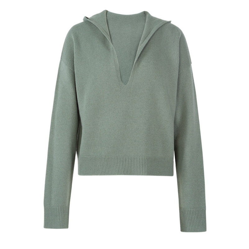 It uses a loose version of the design, this version can not only well accommodate a variety of figures, but also create a casual atmosphere. The hooded element adds a sense of leisure sports to the overall shape, but also weakens the too soft feeling brought by the knitting material to a certain extent, making the style more diverse. The design of the V-neck cleverly elongates the neck line, shows the elegant neck curve of the wearer, and adds a sense of layer. The rib design at the cuff not only plays a role in closing the mouth, preventing cold air from entering, but also adds a sense of refinement in the details. Knitted texture is delicate, showing the high quality of the fabric, soft feel, comfortable to wear and skin friendly.