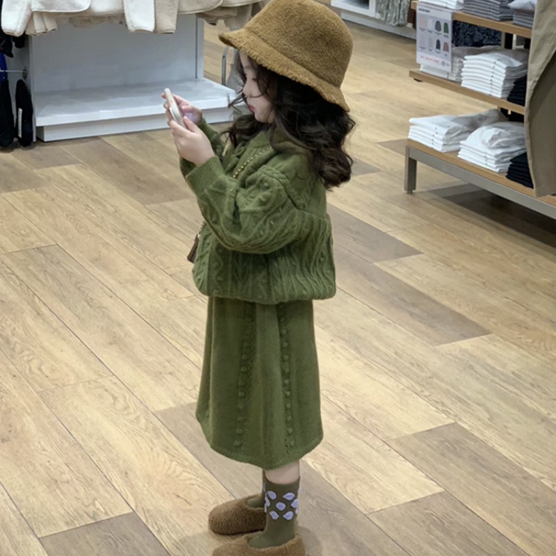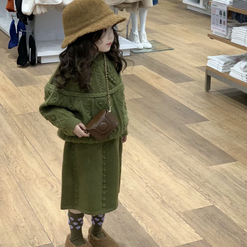 The picture shows a set of children’s sweater suits.