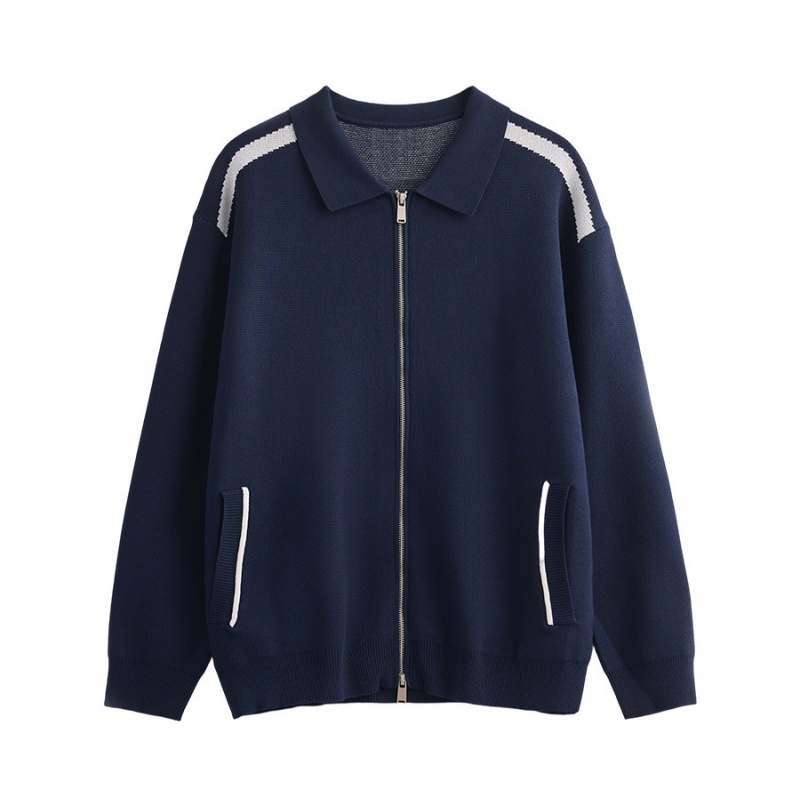 This type of lapel sweater combines classic and fashionable elements. The lapel design exudes elegance, retaining the casual appeal of knitwear while adding a touch of sophistication to any outfit. It’s suitable for a variety of occasions, from everyday wear to casual business settings. The fit is typically loose and comfortable, accommodating a variety of body shapes and providing a relaxed, effortless feel. It also aligns with the current trend for a casual, effortless style.