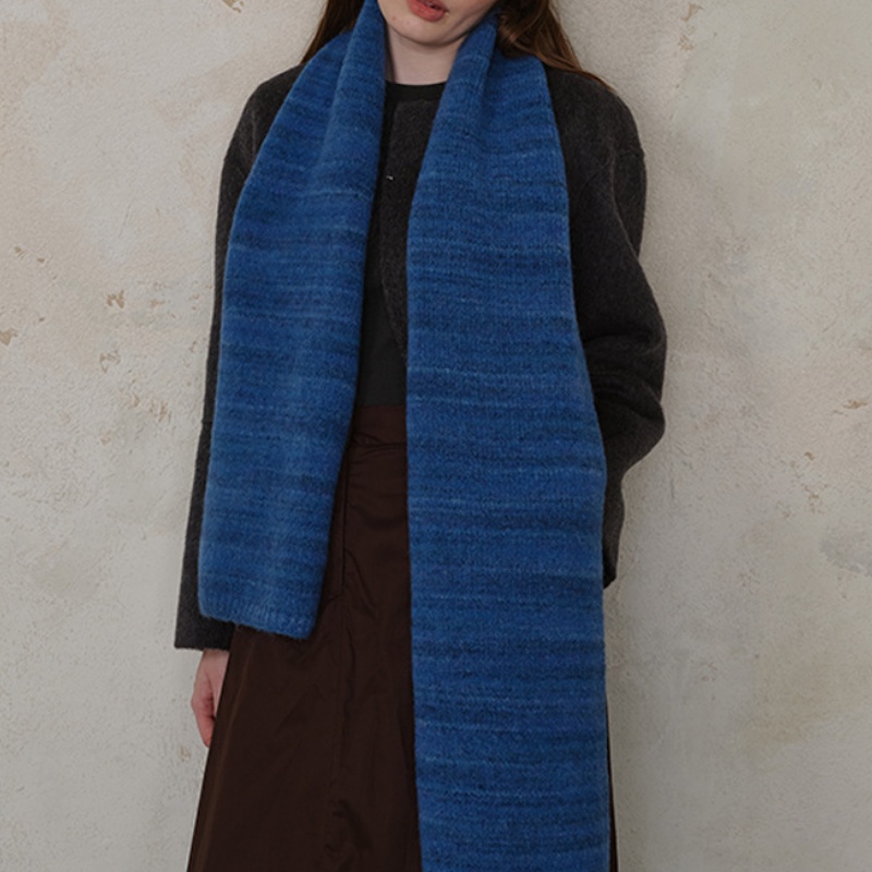 During the production process, basic knitting techniques such as plain knitting were employed to ensure the overall flatness and stability of the scarf. This needlework is simple and commonly used, and can present a simple and elegant texture. Meanwhile, the edges of the scarf have not undergone any additional complex treatment, retaining the natural shape after knitting. It reflects a casual and simple style, highlighting the unique charm of hand weaving and making the scarf more natural and original ecological in beauty.
