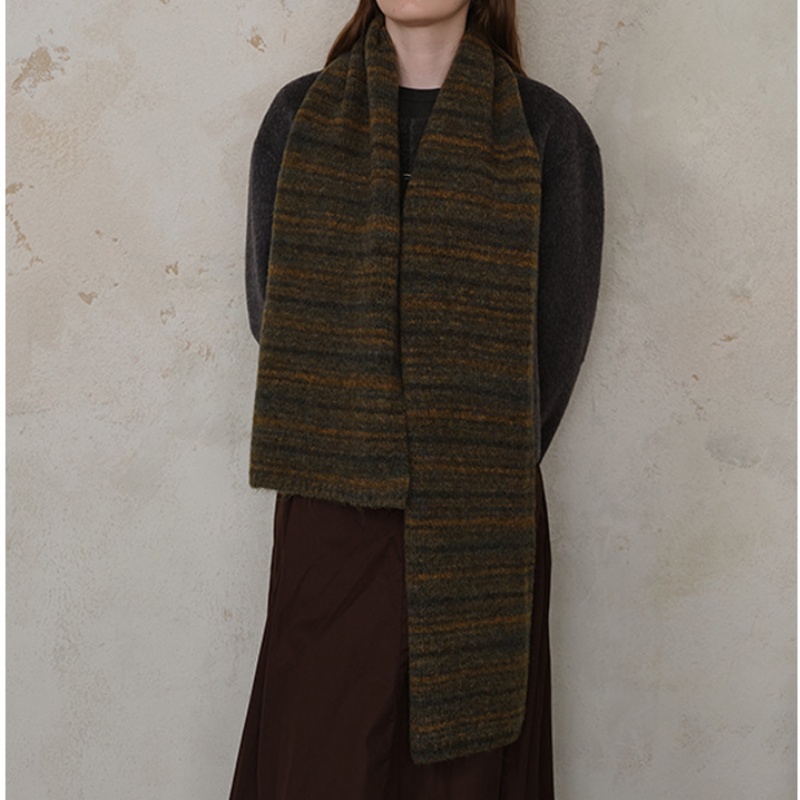 Its surface presents regular striped textures, which are achieved through the application of different weaving methods or the arrangement and combination of yarns during the weaving process. Knitting techniques endow scarves with excellent flexibility and breathability, making them warm while providing a comfortable wearing experience.