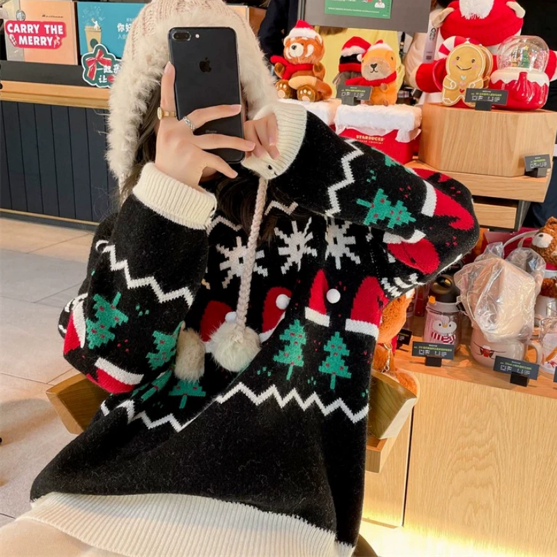 Wearing the effect, this sweater is loose and comfortable, suitable for cold winter wear, can provide good warmth, but also let the wearer show a lively and playful style. Whether attending a Christmas party or on a daily trip, it can easily become a highlight, highlighting a unique holiday fashion taste.