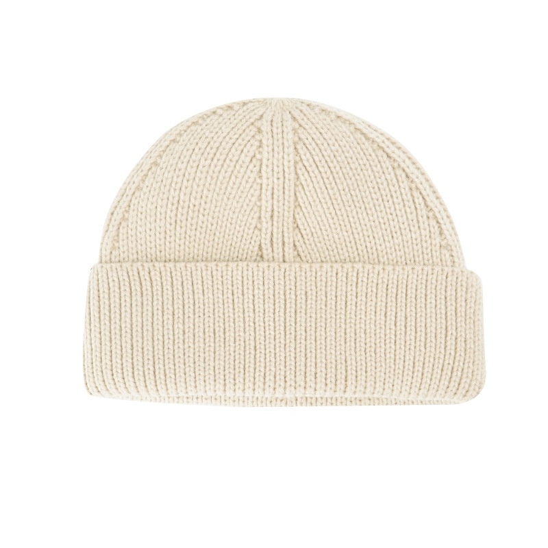 This is a knitted hat accessory, using a classic rib weaving process. The fabric surface presents a regular longitudinal stripe texture, which not only gives the hat good elasticity, so that it can better fit the head and adapt to different head circumference, but also adds a visual sense of layering and three-dimensional.