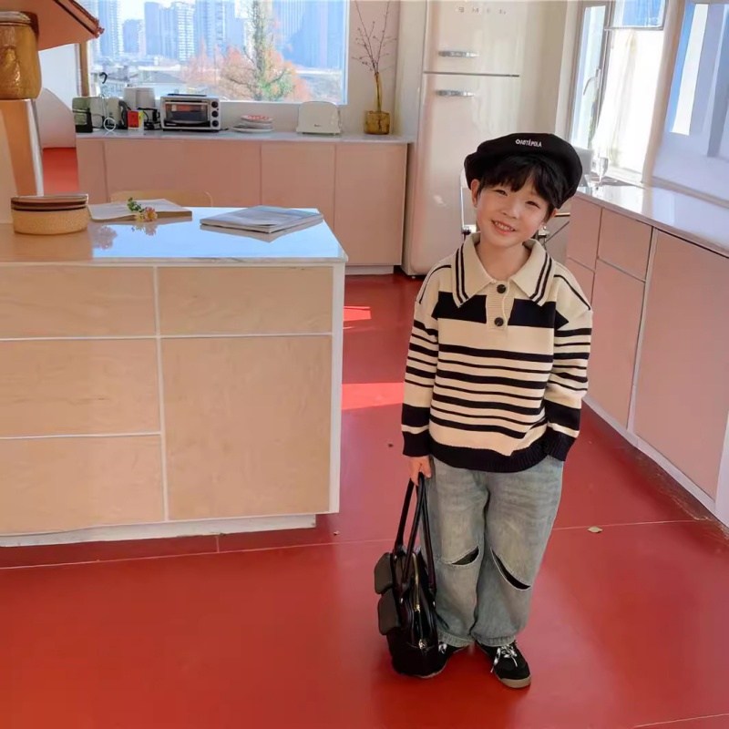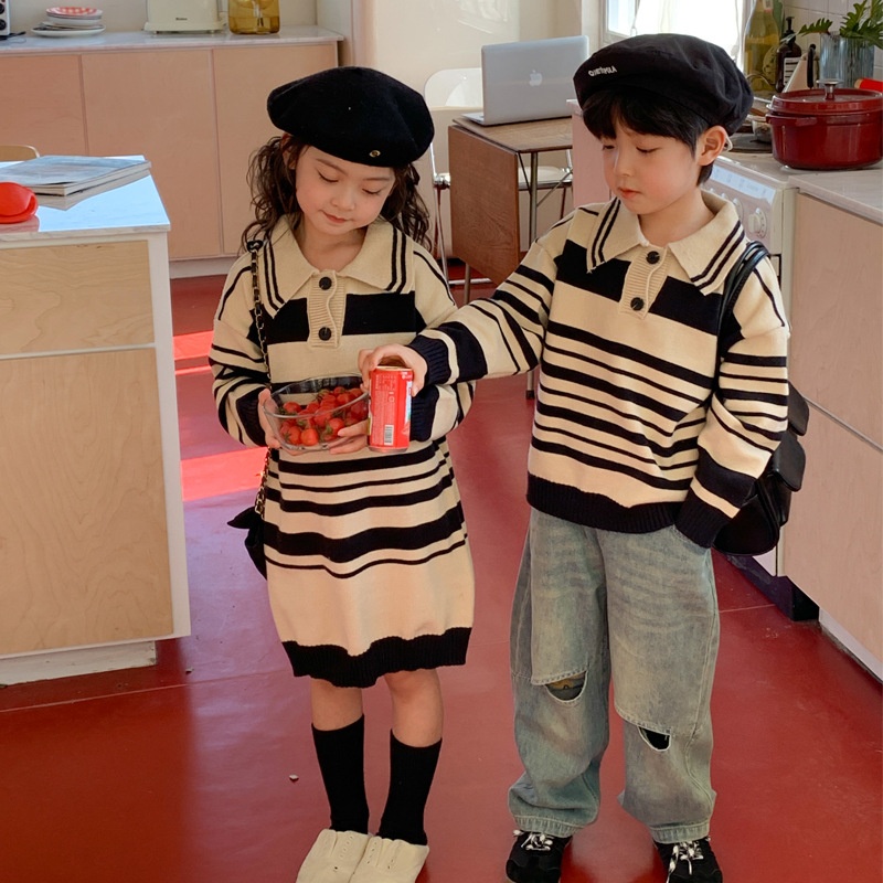Customized children’s sweaters with POLO collar and matching trousers for siblings