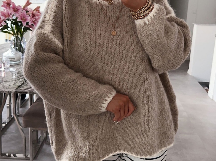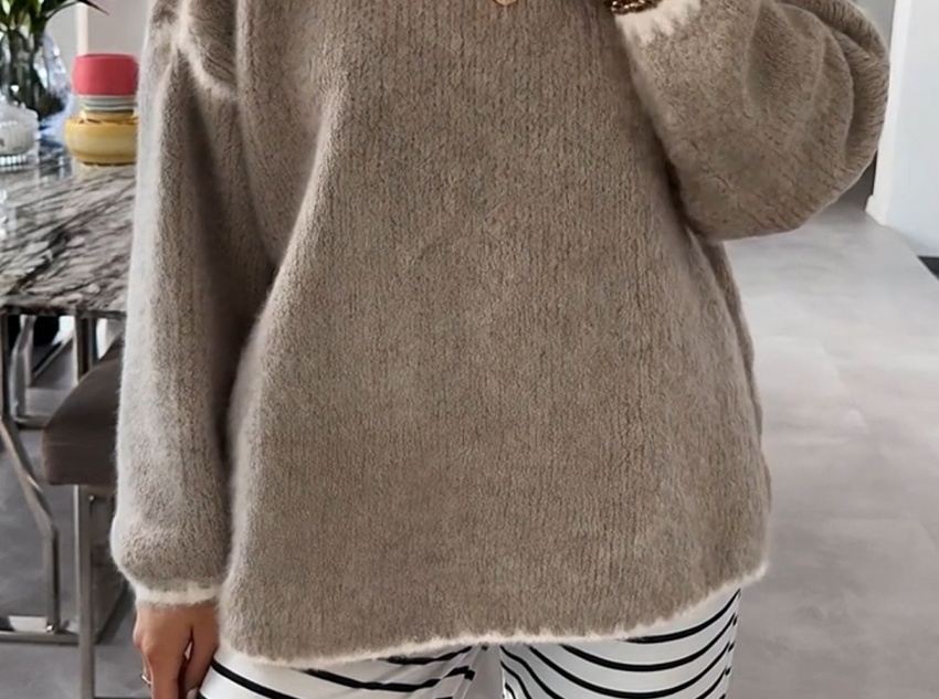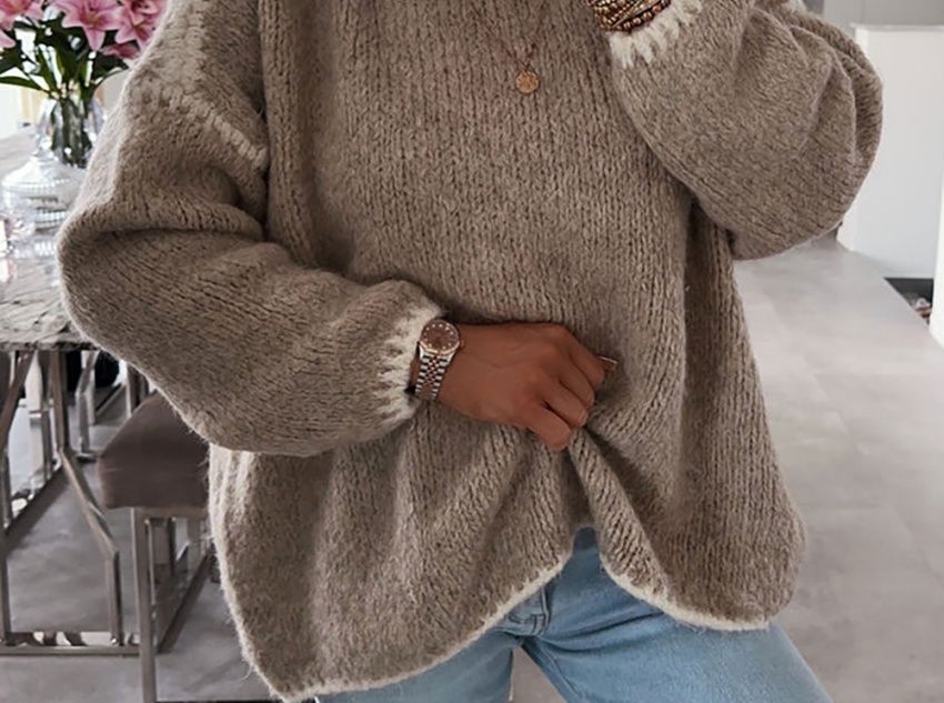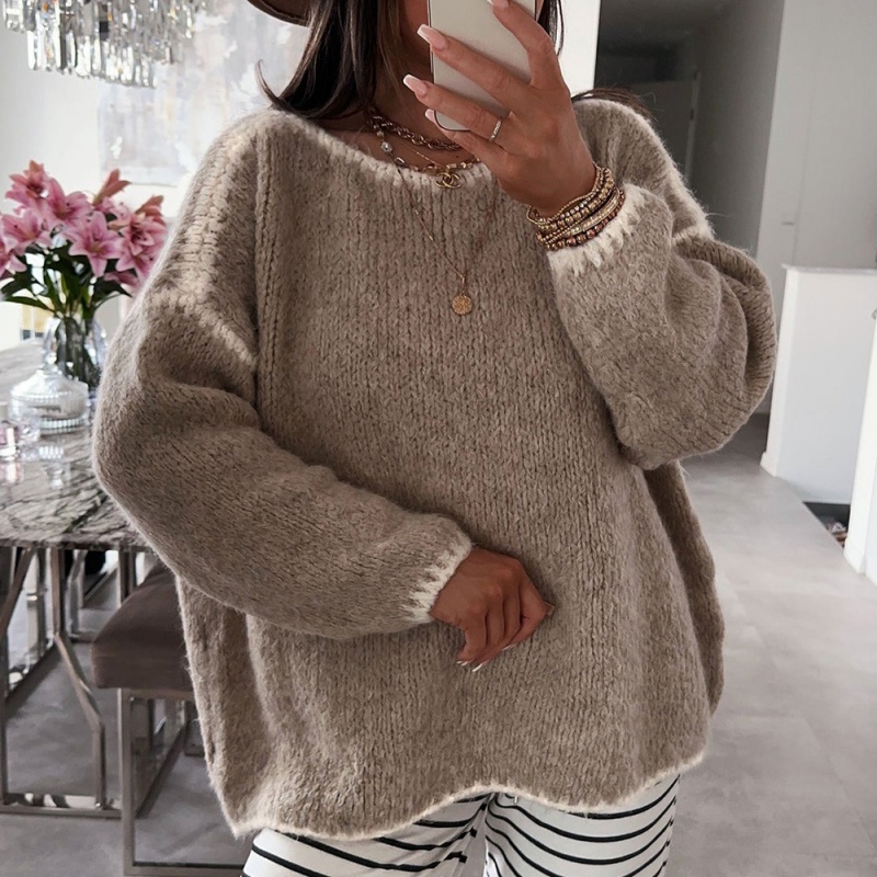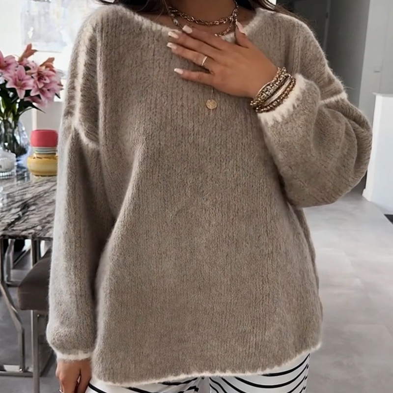 This round-neck faux mink cashmere women's sweater combines softness and warmth in its fabric, offering both comfort and warmth. The design features a classic round neck, a relaxed fit, and contrasting trim, combining style and practicality. Faux mink cashmere is its core fabric, made from acrylic and polyester fibers, processed with a special technique to mimic the soft texture of mink cashmere. The ribbed texture not only adds dimension but also flatters the figure. It's suitable for various occasions, including casual wear, light work, dates, and parties, making it a versatile staple for autumn and winter.