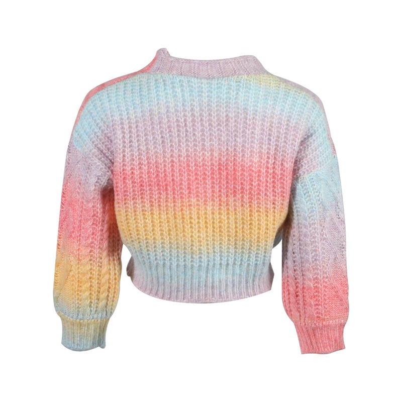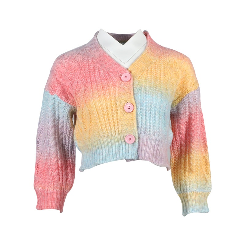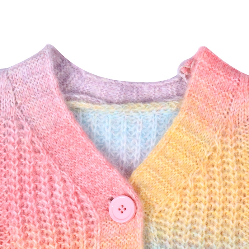 Rainbow-colored knitted cardigan women's sweater,. It supports OEM production and customization of your exclusive style.